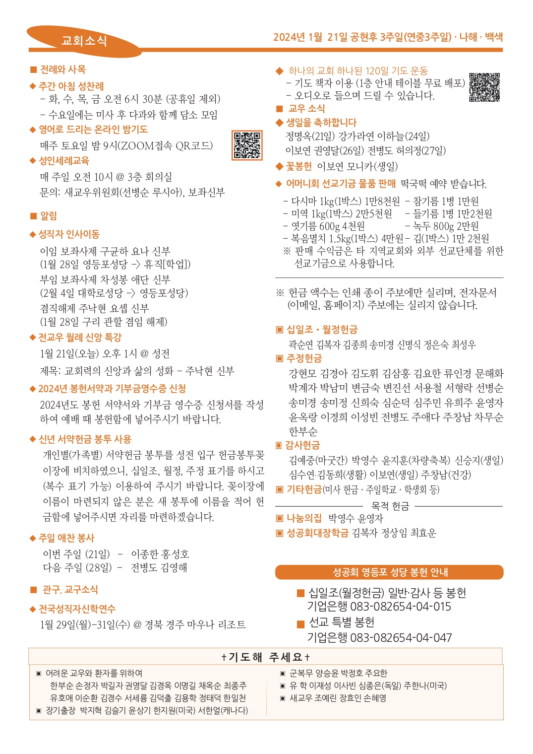 | 다음글 | 2024년 1월 14일 공현후 2주일 | 강현모 | 2024.01.13 | 0 | 305 |