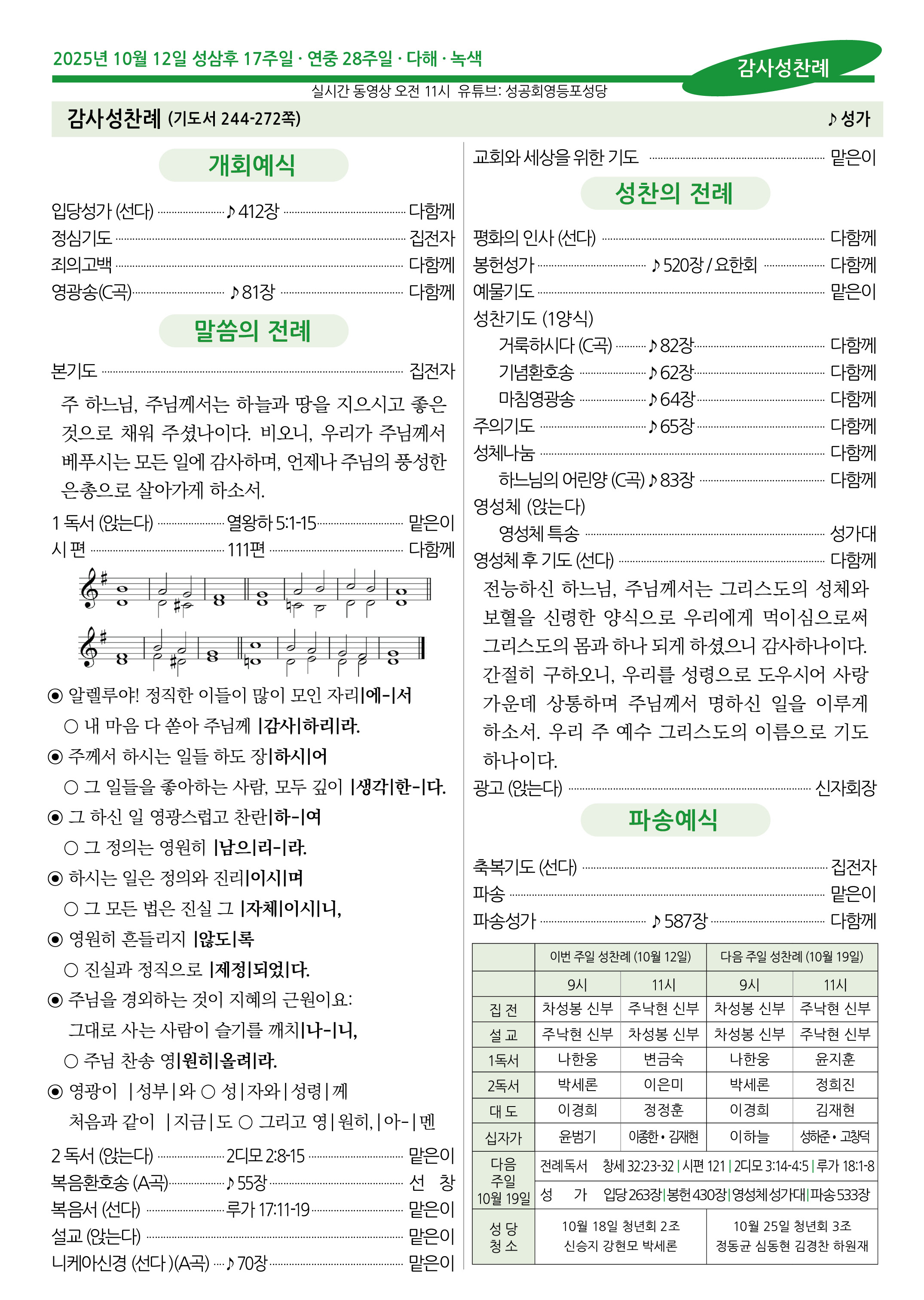 2025년 10월 12일 성삼후 17주일 · 연중 28주일