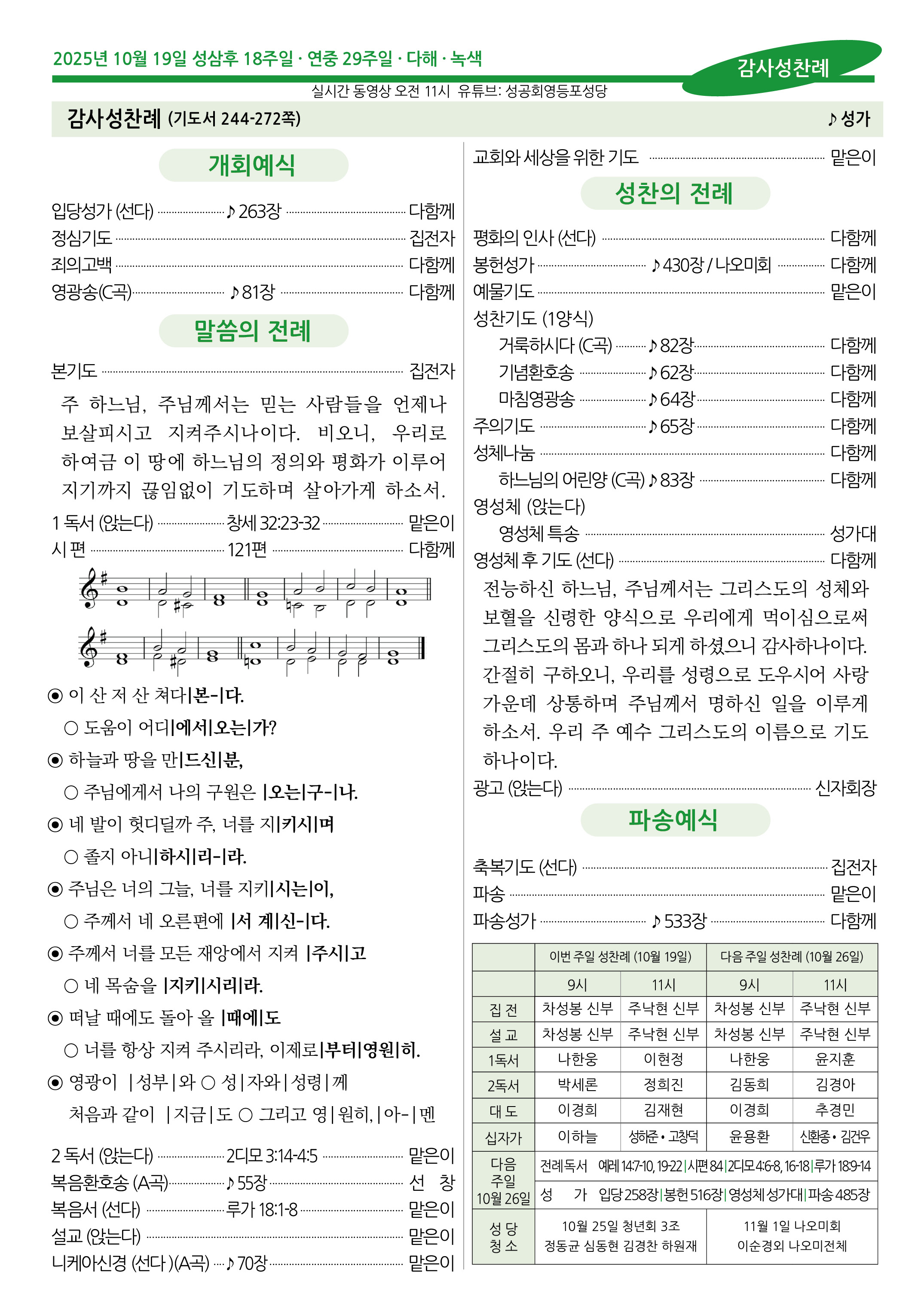 2025년 10월 19일 성삼후 18주일 · 연중 29주일