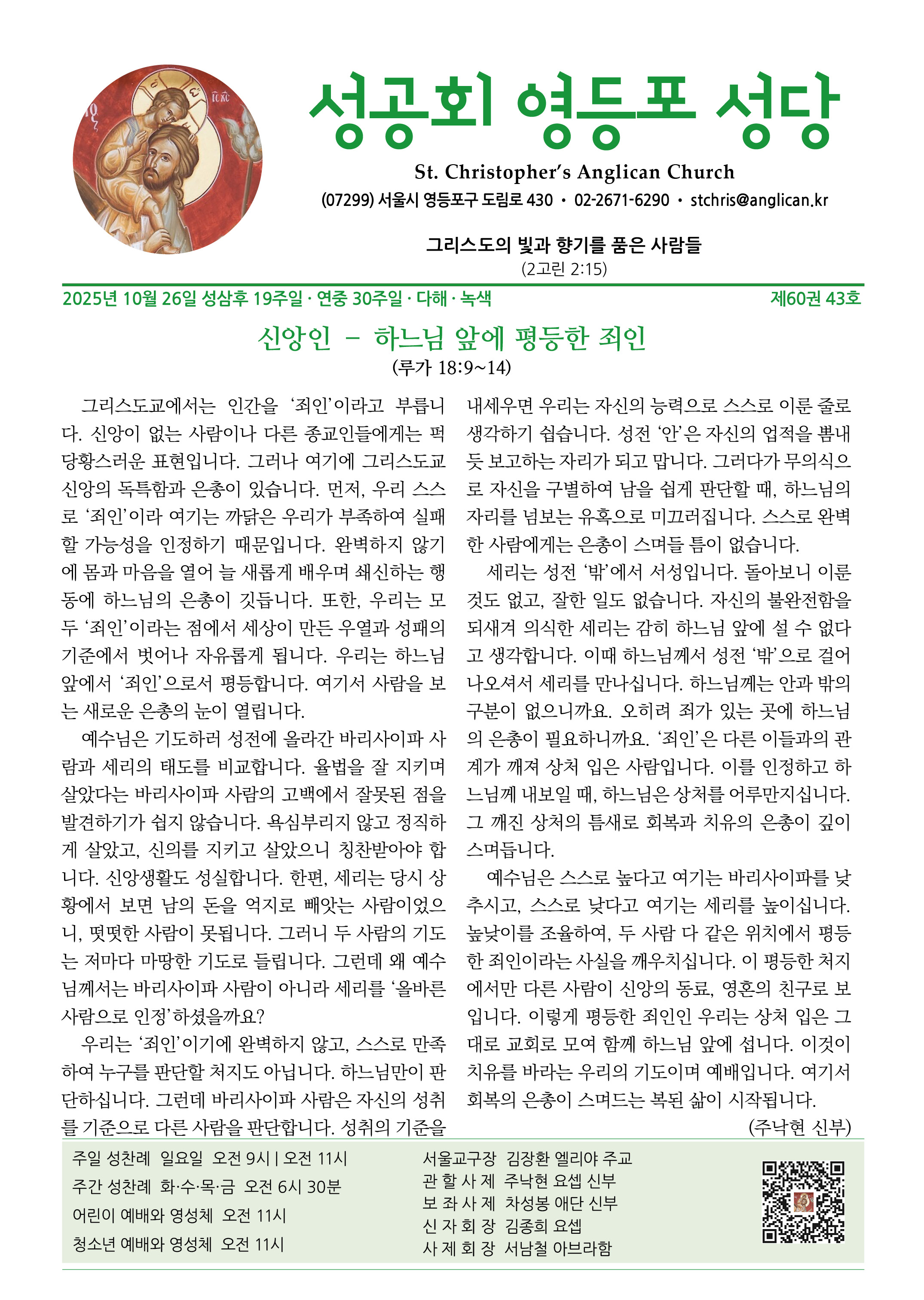 2025년 10월 26일 성삼후 19주일 · 연중 30주일