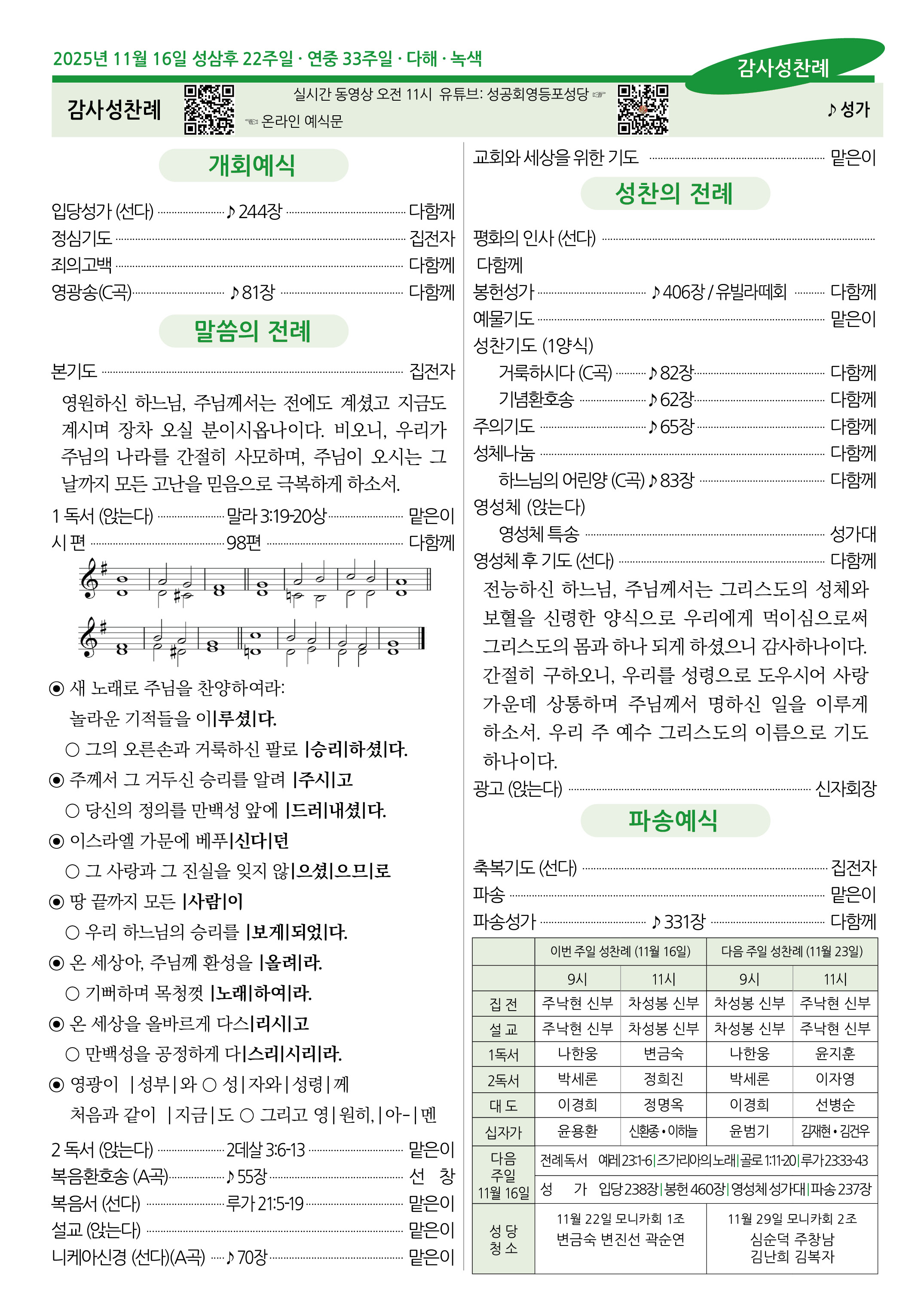 2025년 11월 16일 성삼후 22주일 · 연중 33주일