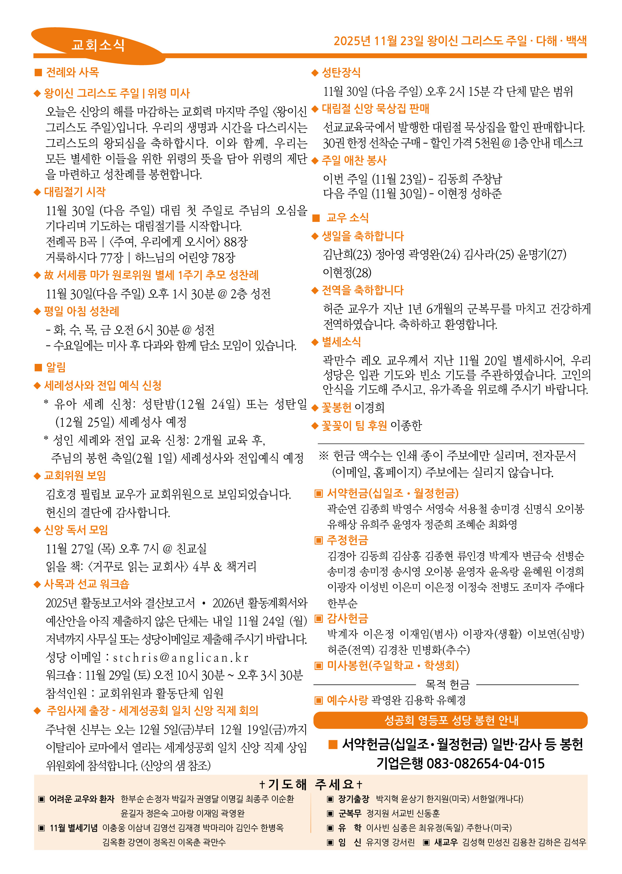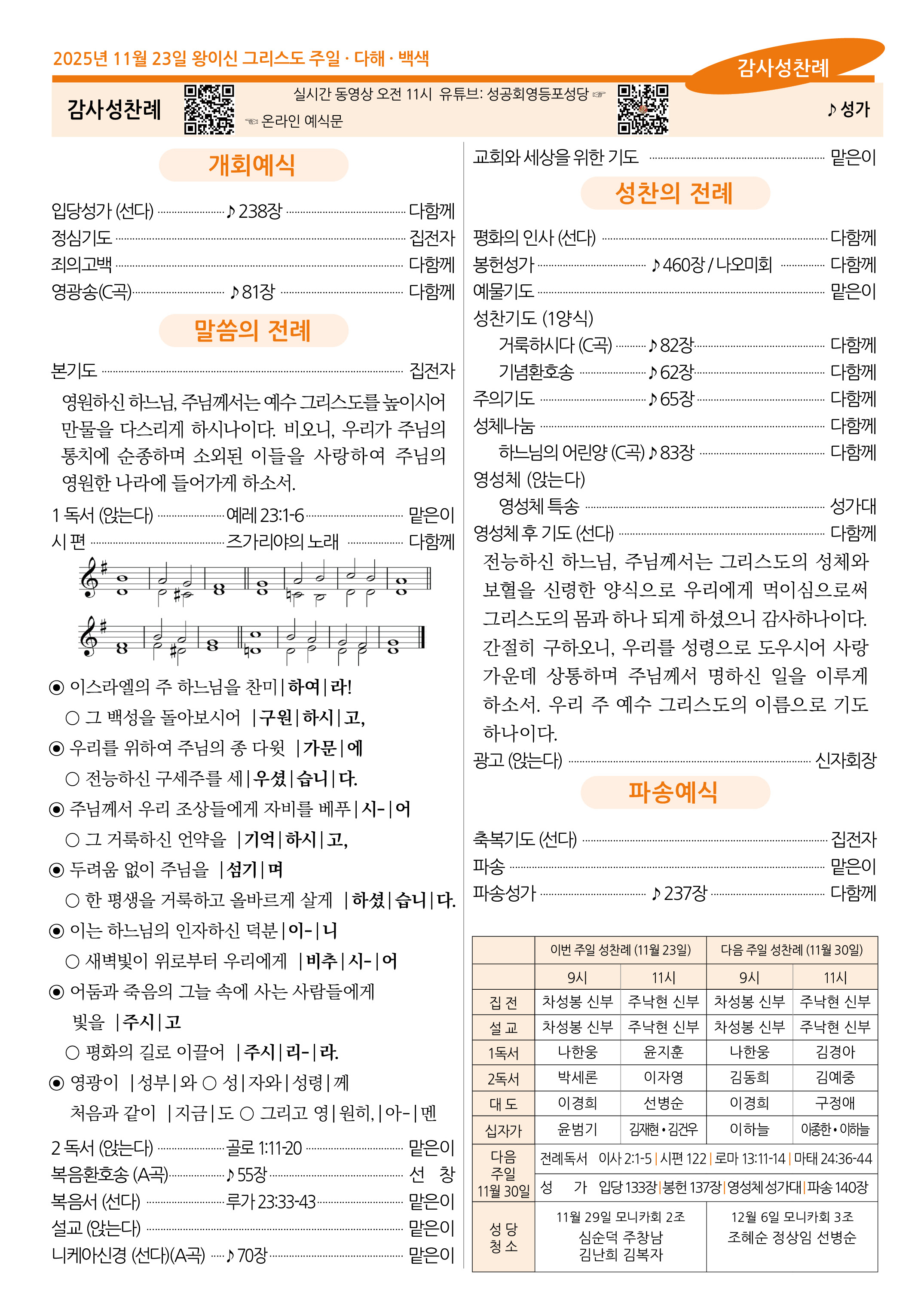 2025년 11월 23일 왕이신 그리스도 주일