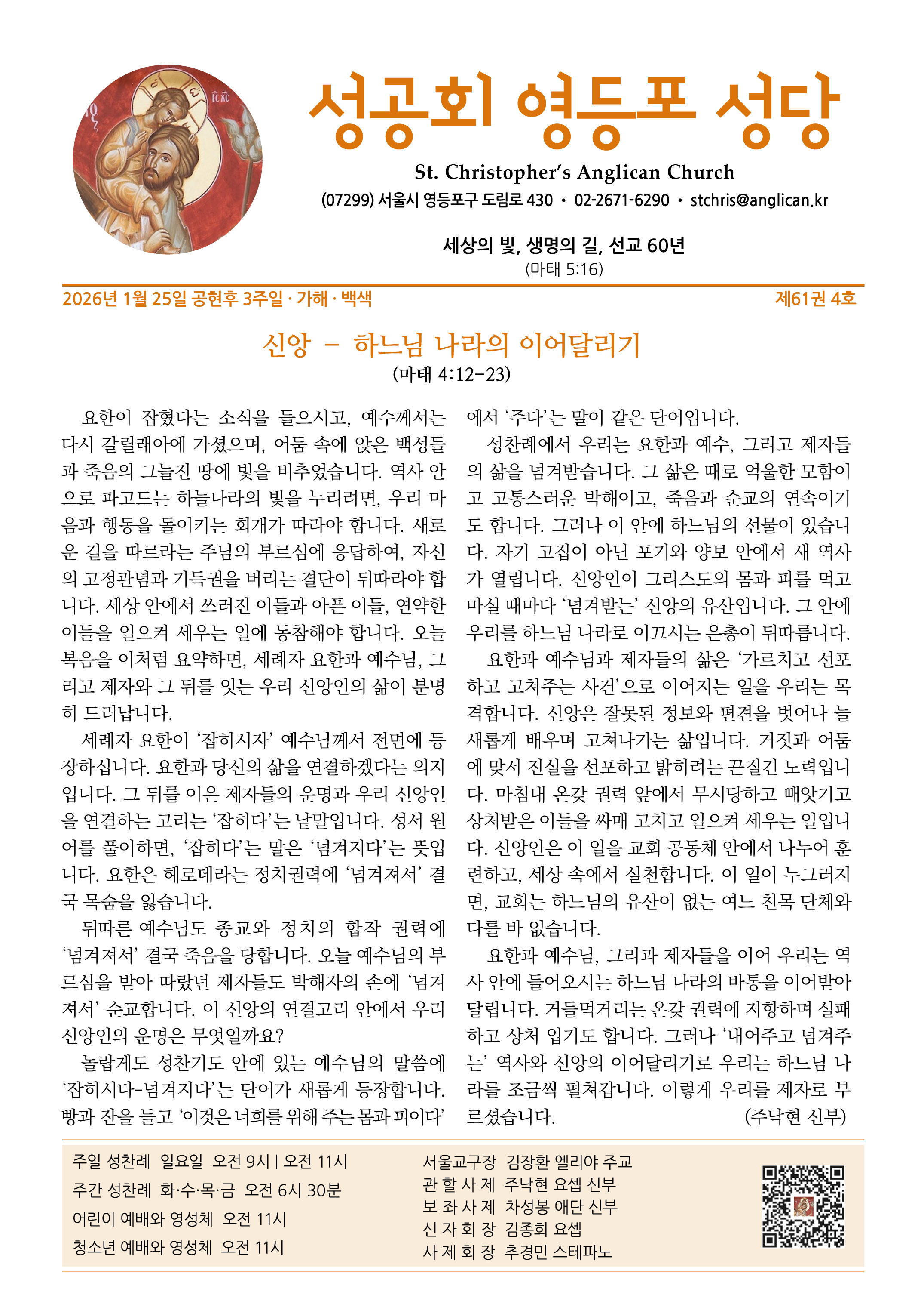 | 이전글 | 2026년 2월 1일 공현후 4주일 · 주님의 봉헌 축일 | 강현모 | 2026.01.31 | 0 | 37 |