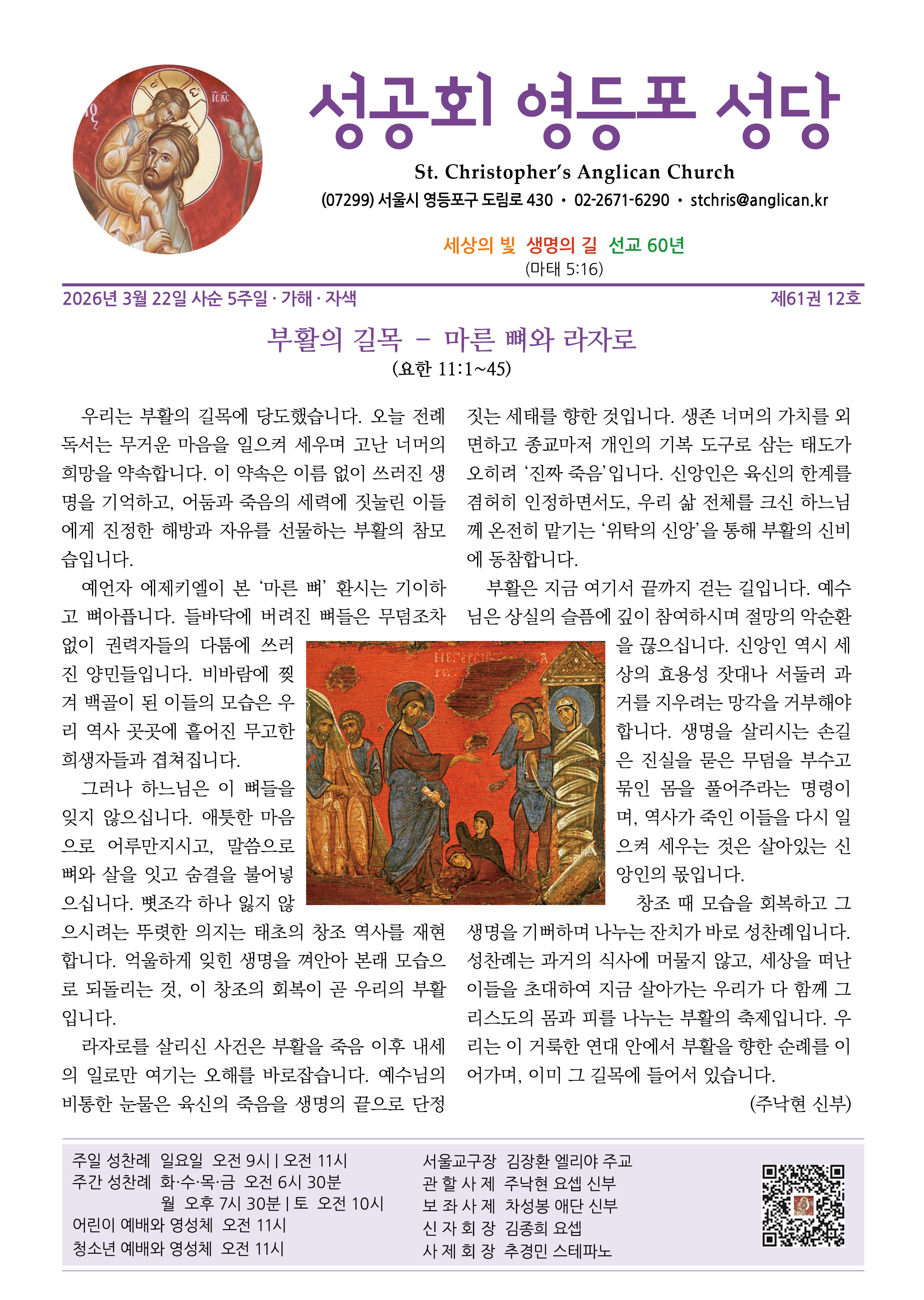 | 이전글 | 2026년 3월 29일 성지 · 고난주일 | 강현모 | 2026.03.28 | 0 | 55 |