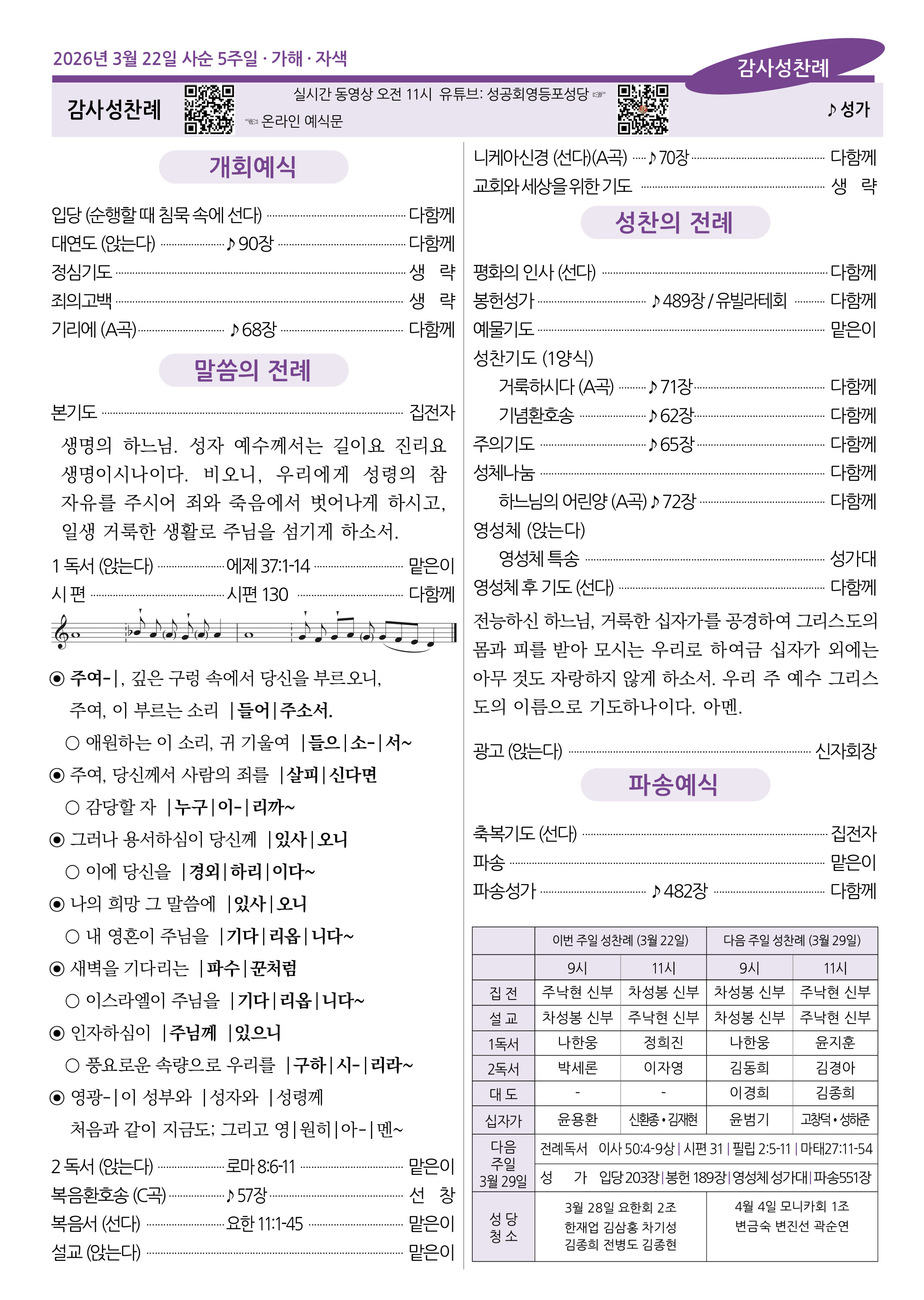 2026년 3월 22일 사순 5주일